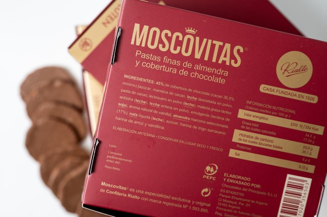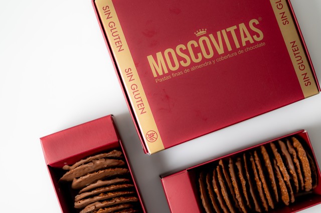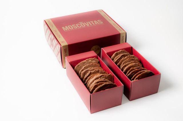 Caja de 250 g que contiene aproximadamente 25 Moscovitas.